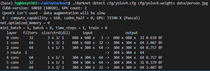 $ ./darknet detect cfg/yolov4.cfg cfg/yolov4.weights data/person.jpg